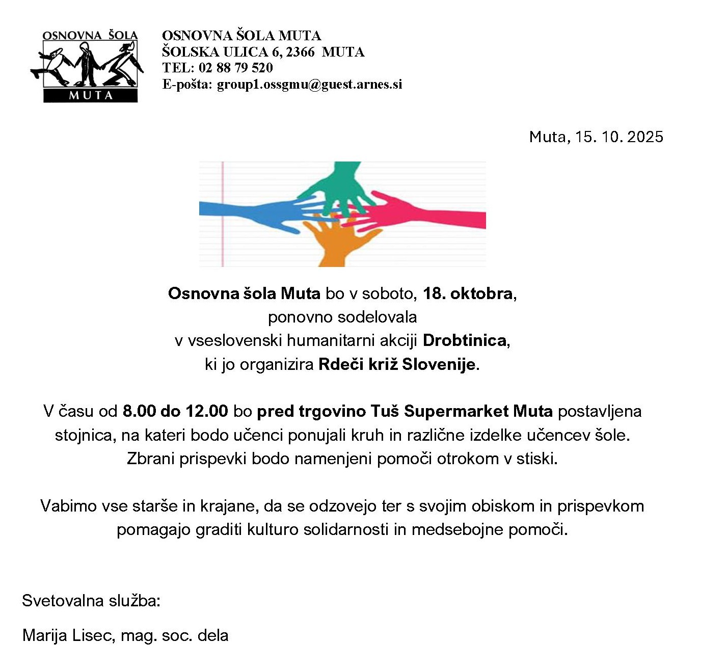 Humanitarna akcija Drobtinica v soboto 18. 10. 2025 Avtor: Denis Bobovnik | Okt 16, 2025 | AKTUALNO [Show as slideshow]