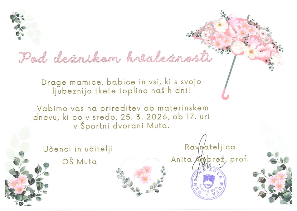 V petek, 13. 3. 2026, je za dan žena na prireditvi v dvorani Keinhofen na Muti nastopil Mladinski pevski zbor Osnovne šole Muta, ki je skupaj z Markom Vozljem pričaral prav poseben glasbeni večer. Zbor je z ritmom otvoril oder in samostojno zapel tri skladbe, nato pa so otroci skupaj s pevcem izvedli še dve pesmi.