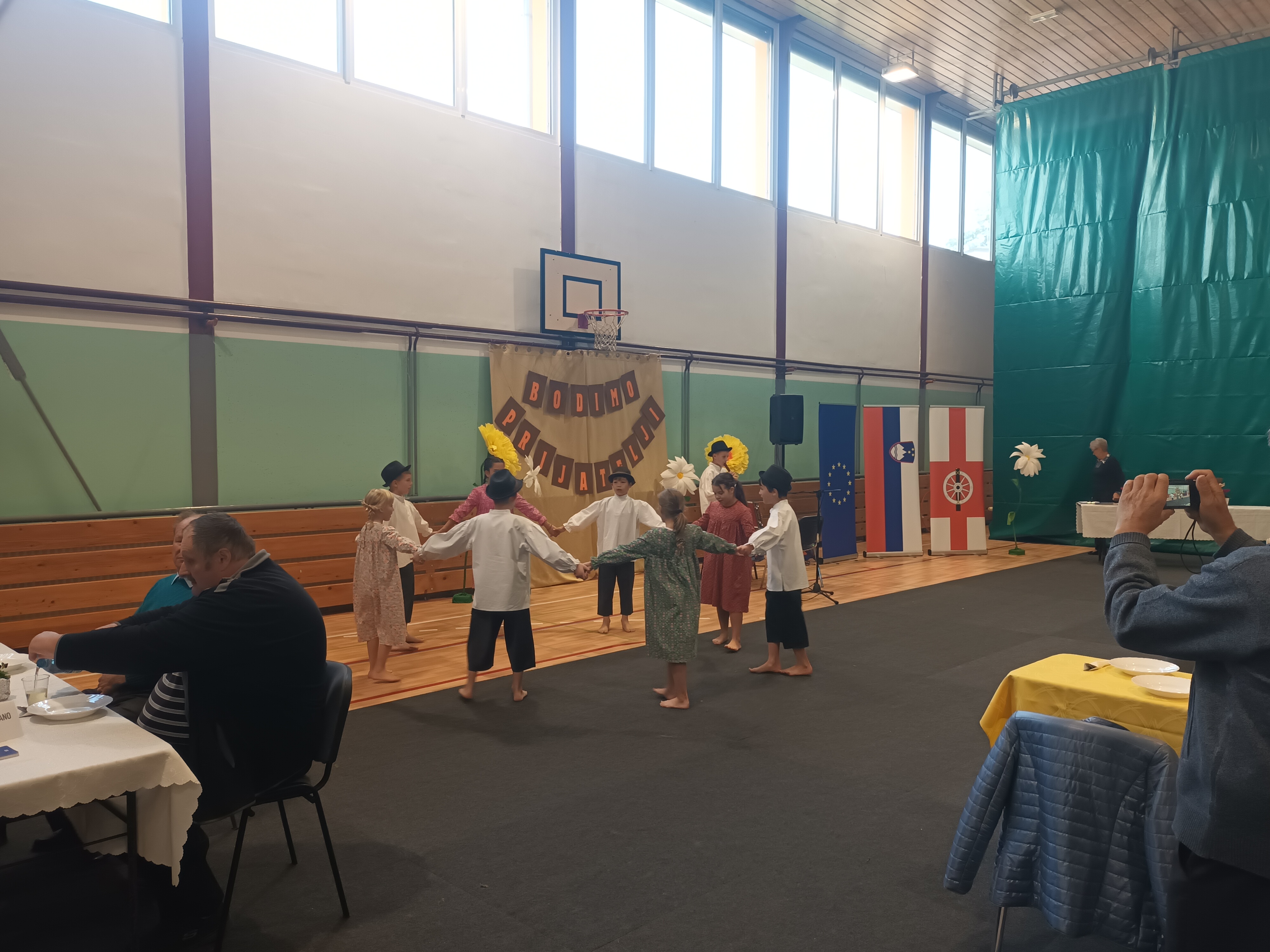 V soboto, 4. 10. 2025, je v šolski telovadnici potekala prireditev, namenjena srečanju starejših občanov. V kratkem kulturnem programu so sodelovali tudi učenci OŠ Muta, ki obiskujejo interesno dejavnost folklora.