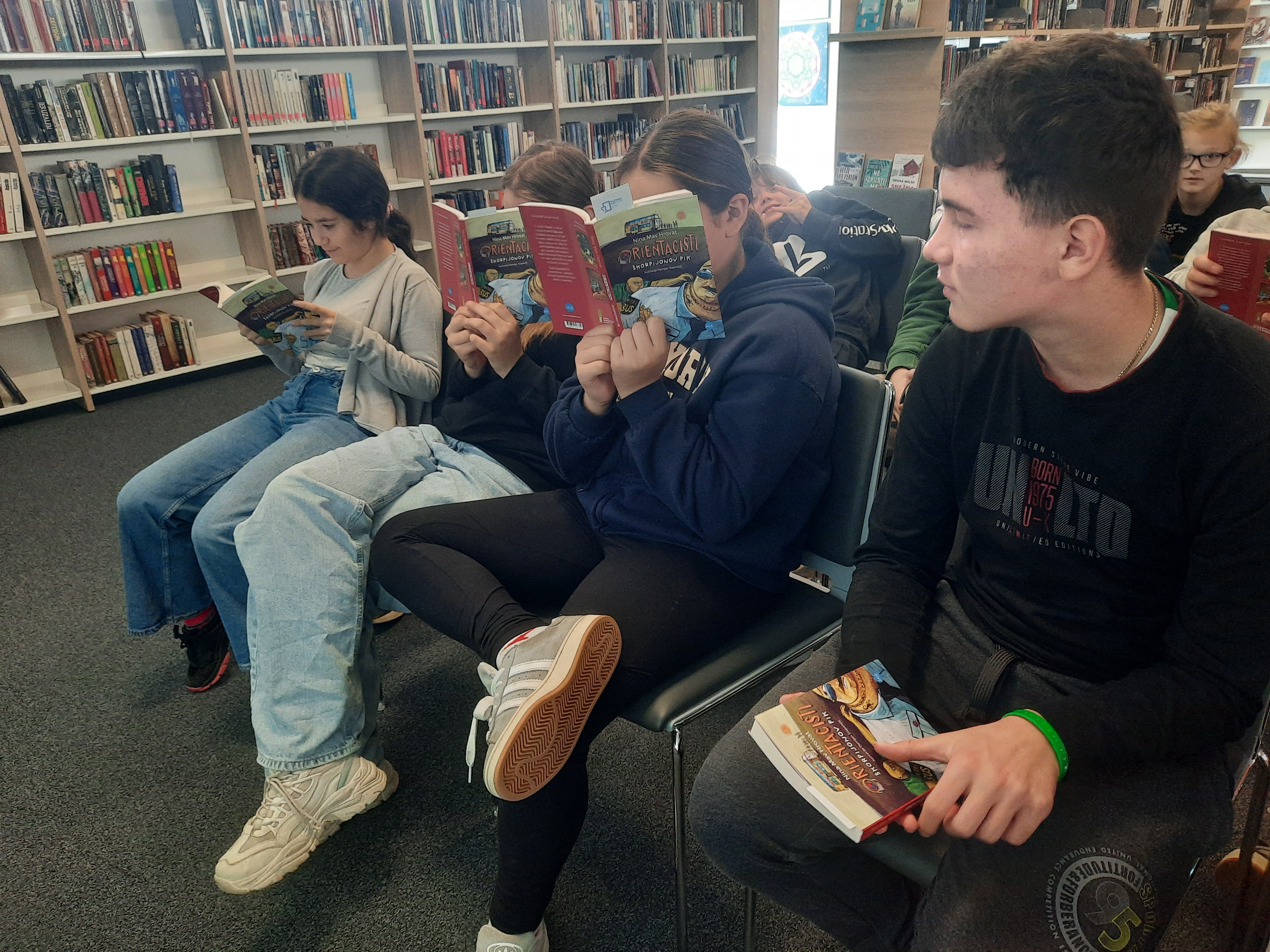 V sklopu projekta Rastem s knjigo, ki je namenjen spodbujanju in motiviranju mladih za branje kakovostne slovenske književnosti ter spodbujanju bralne kulture ter pozitivnega odnosa do knjige, smo najprej obiskali Knjižnico Radlje ob Dravi. Knjižničarka, ga. Helena Gosak, je učencem predstavila knjižnico in njeno ponudbo. Učencem je predstavila tudi pomen splošnih knjižnic, enote Knjižnice Radlje ob Dravi ter široko mrežo knjižnic po Sloveniji. Učenci so prejeli knjigo Nine Mav Hrovat: Orientacisti – Škorpijonov pik. Prav tako je bil dan namenjen tudi spoznavanju kulturne in zgodovinske dediščine domačega kraja. Obiskali smo Kovaški in gasilski muzej Muta. Po muzeju nas je vodila županja, ga. Angelca Mrak, ki je predstavila pomembne izseke iz zgodovine Mute. Kulturni dan smo zaključili z delavnico Vlivanje rimskih novcev. Kustosinja iz Koroškega pokrajinskega muzeja je učencem najprej predstavila zgodovino nastanke denarja, nato pa so si učenci izdelali novec. V glinen podstavek z vzorcem so vlivali vosek in oblikovali novec.