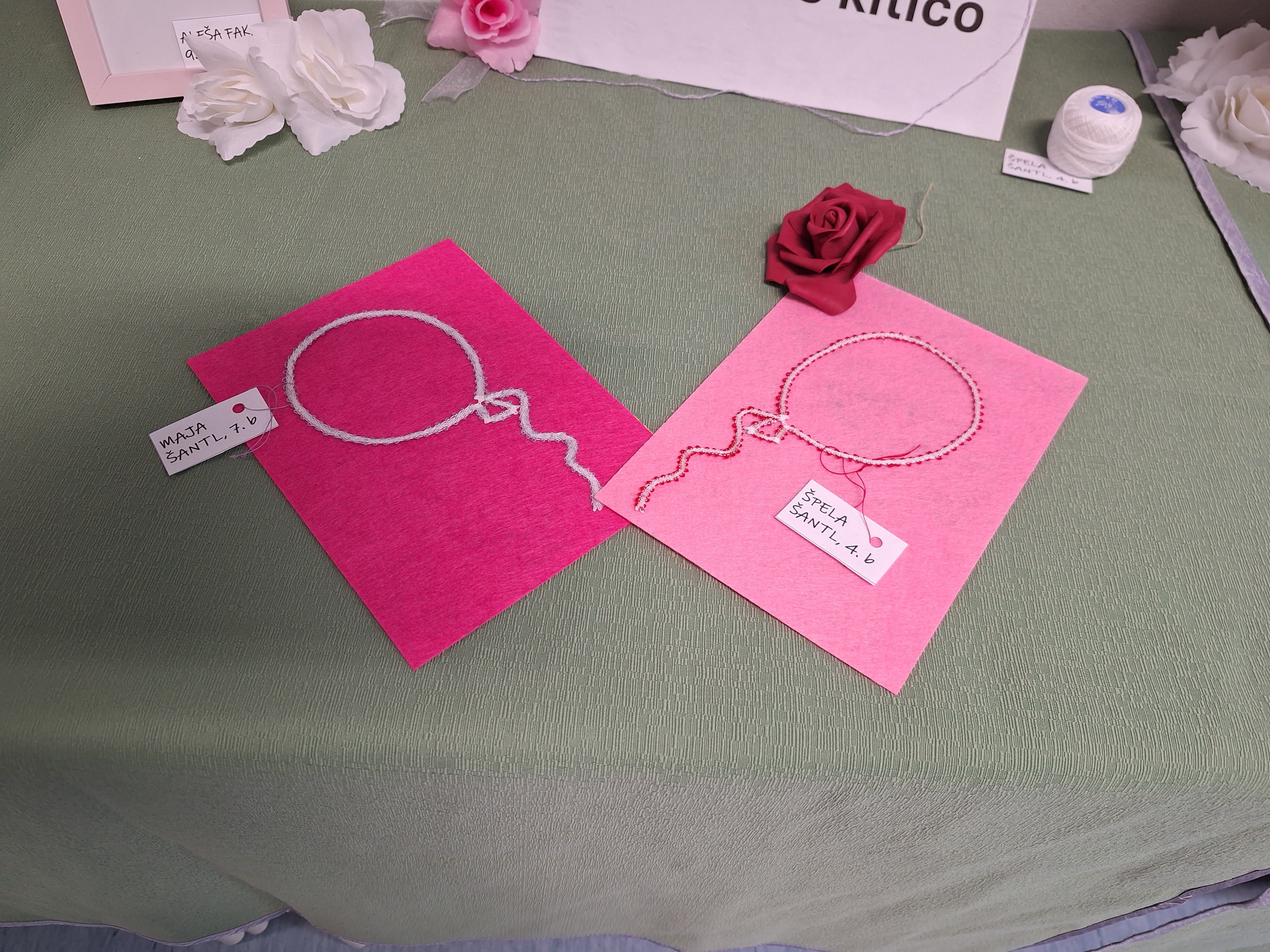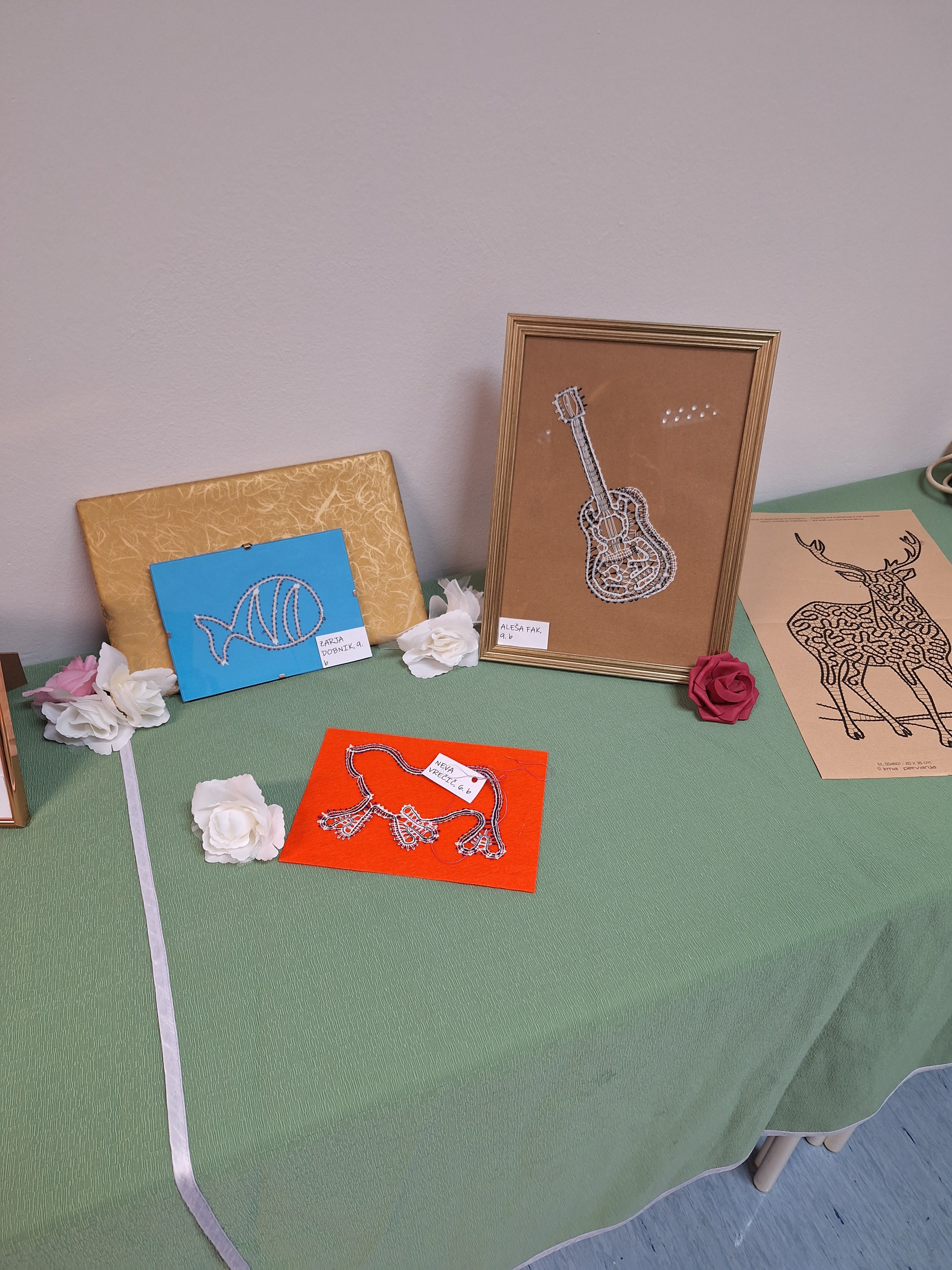 Klekljanje obiskujeva že šest let (Aleša) in devet let (Zarja). Izdelali sva že kar nekaj vzorčkov, ki so bili prejšnji teden na razstavi v naši šolski knjižnici. Tam so bili razstavljeni tudi izdelki mlajših učenk. Letos hodiva h krožku zadnje leto, zato se bova s tem ukvarjali samo še občasno. Imeli sva se super in zelo bova pogrešali popoldansko druženje z njimi. Mentorici Sonji Topler se iskreno zahvaljujeva za vso spodbudo in znanje, ki nama ju je v tem času predala.