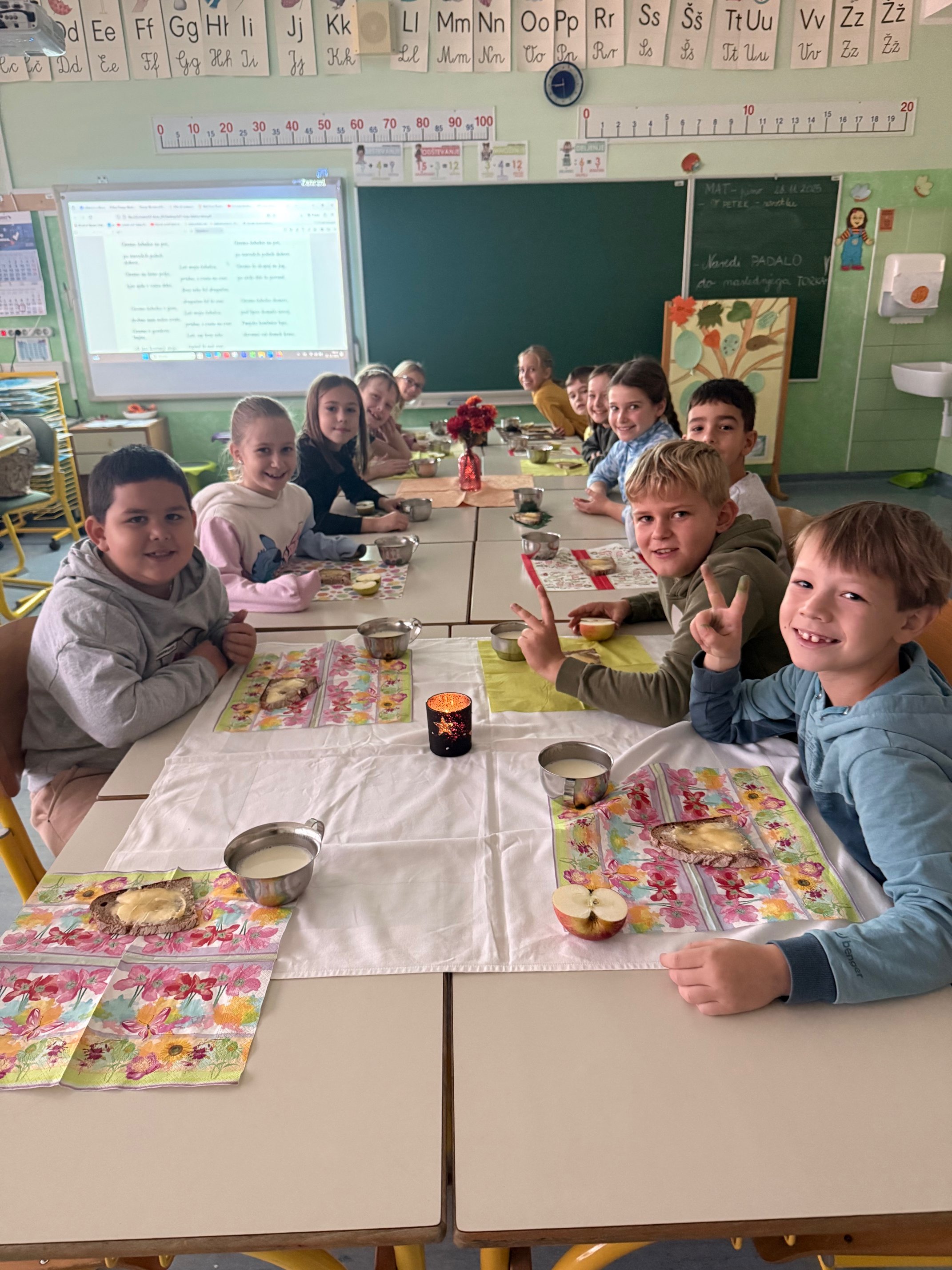 Učenci 1., 2. in 3. razreda smo letošnji Tradicionalni slovenski zajtrk obeležili nekoliko drugače – še bolj poučno, ustvarjalno in slastno. Dan smo začeli s pogovorom o pomenu zdrave prehrane, prehranski kulturi, vrstah jedi ter o pomembnosti lokalno pridelane hrane.