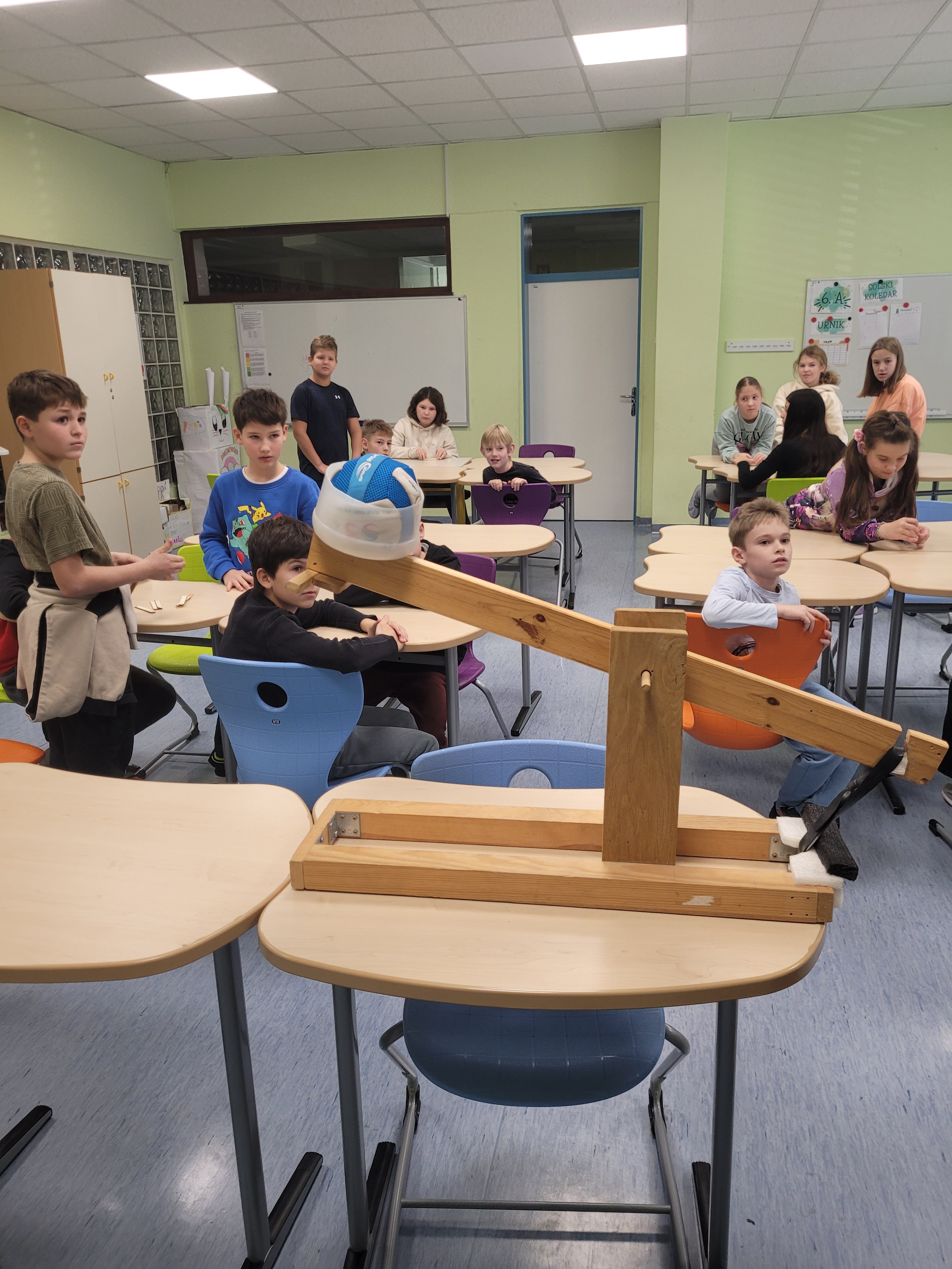 Veliko pozornosti je pritegnila tudi delavnica o vzvodih in škripcih, kjer so učenci preizkušali dvigovanje bremen ter opazovali, kako si lahko z mehanskimi primeri olajšamo delo. Na delavnici s katapultom so na zabaven način spoznavali principe delovanja sile, medtem ko so pri fizikalni postaji raziskovali razliko med kinetično in potencialno energijo ter jo opazovali v praksi.